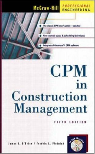 Tried and true CPM scheduling streamliner. Now in its 5th edition, this must-have resource for using Critical Path Method shows you exactly how to build speed, accuracy, and flexibility into construction project scheduling. CPM in Construction Management by award-winning author James J. O'Brien provides in-depth coverage of Primavera's CPM software which dominates the industry. Brand new CPM software accompanies new example cases that bring you up-to-date with today's construction situations. This complete package helps you run a tight construction ship with all you need to know about: event time computations; procurement; preconstruction; monitoring project progress; cost control; equipment and workforce planning; precedents networks; CPM in claims and litigations; and DOZENS of other CPM factors.